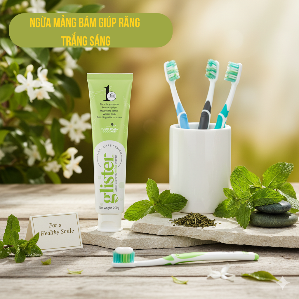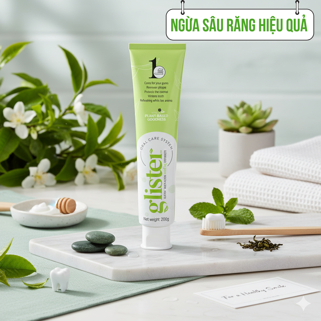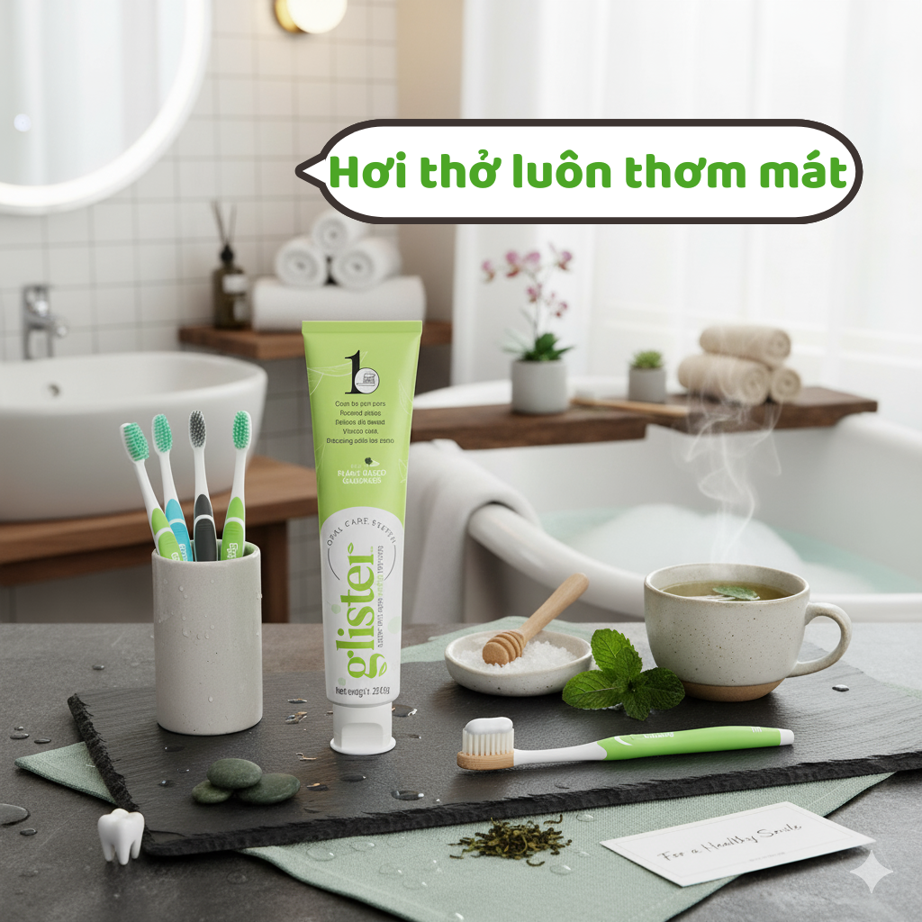 🦷 Kem Đánh Răng Glister Trà Trắng – Răng Miệng Khỏe, Hơi Thở Thơm Mát Ngay Từ Lần Đầu