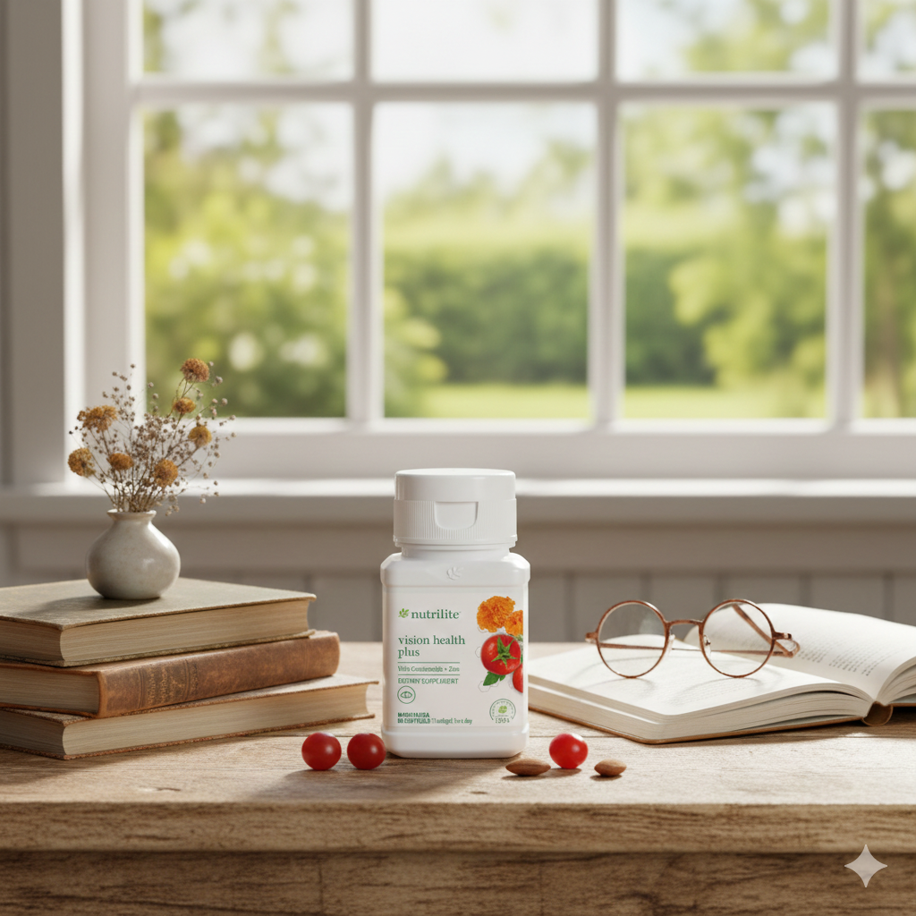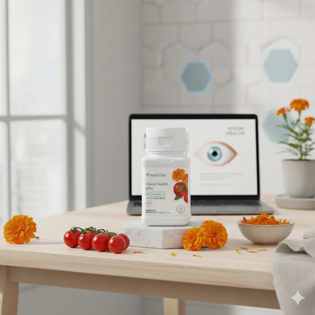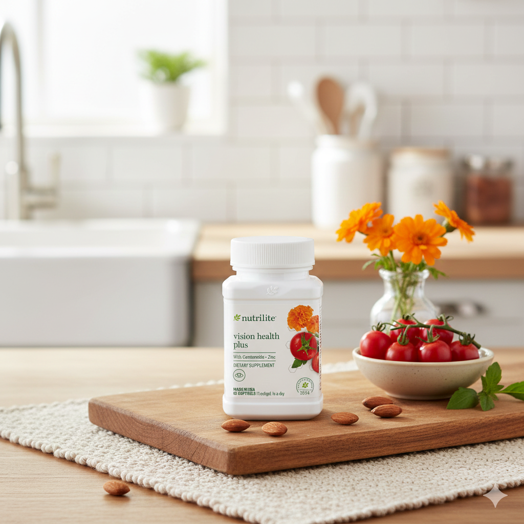 Thành phần chính: Trong 1 viên 0,55 g chứa: Bột chiết xuất quả cà chua (28,4 mg) (tương ứng 1,5 mg Lycopene), Carotenoids từ bột chiết xuất hoa cúc (19,8 mg) (tương ứng 12 mg Lutein và 2,4 mg Zeaxanthin), Kẽm Gluconate (19,3 mg) (tương ứng 2,55 mg Kẽm), Bột chiết xuất vi tảo Dunaliella salina (4,92 mg) (tương ứng 2,5 mg Beta Carotene).